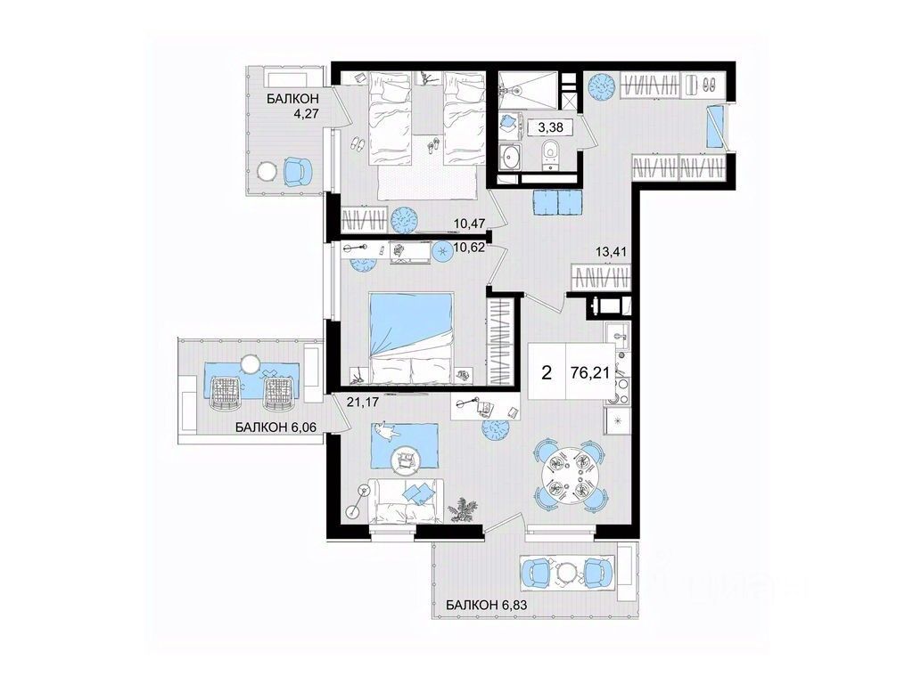 76,21 м²