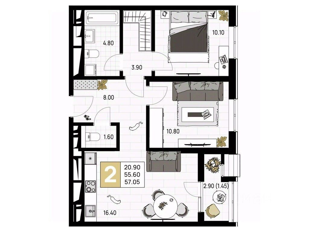Общая площадь57,05 м²