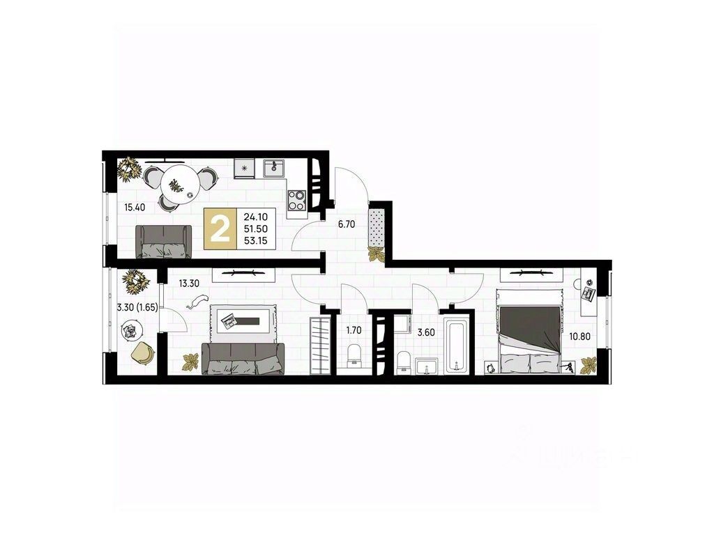Общая площадь53,15 м²