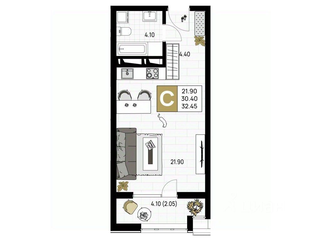 Общая площадь32,45 м²
