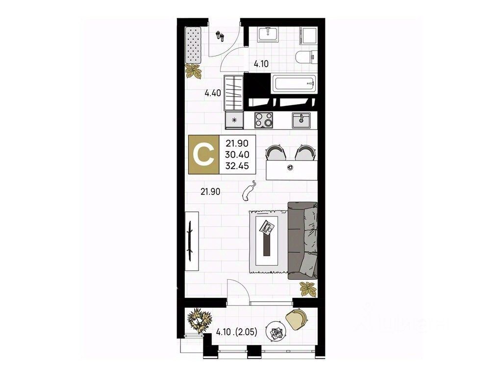 Общая площадь32,45 м²
