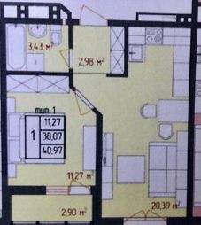 Квартира площадью 41 м², расположенная на 14-м этаже 18-этажного монолитного дома, встречает вас качественным ремонтом: