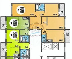 Трехкомнатная квартира, площадью 80 кв. м. расположена на восьмом этаже шестнадцатиэтажного дома.
