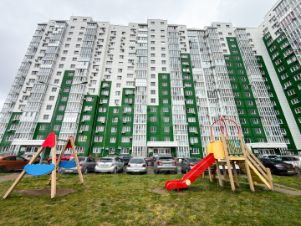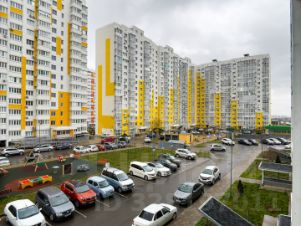 Территория жилого комплекса: облагорожена зелеными насаждениями, парковкой по всему периметру дома, оснащена детскими и спортивными площадками, беседками и лавочками, рядом с домом остановка общественного транспорта.