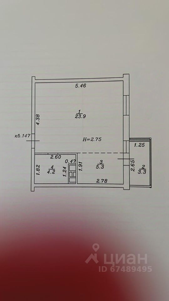 Объект 172052. Продам однокомнатную квартиру 33.4 м².