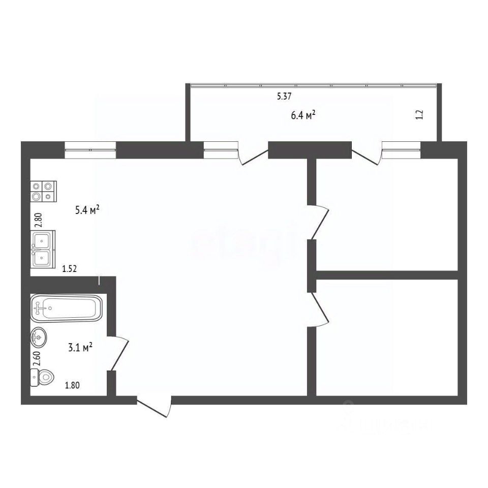 В квартире большая кухня-гостиная, для комфортного времяпрепровождении всей семьи и встречи гостей, а так же две отдельные спальни.