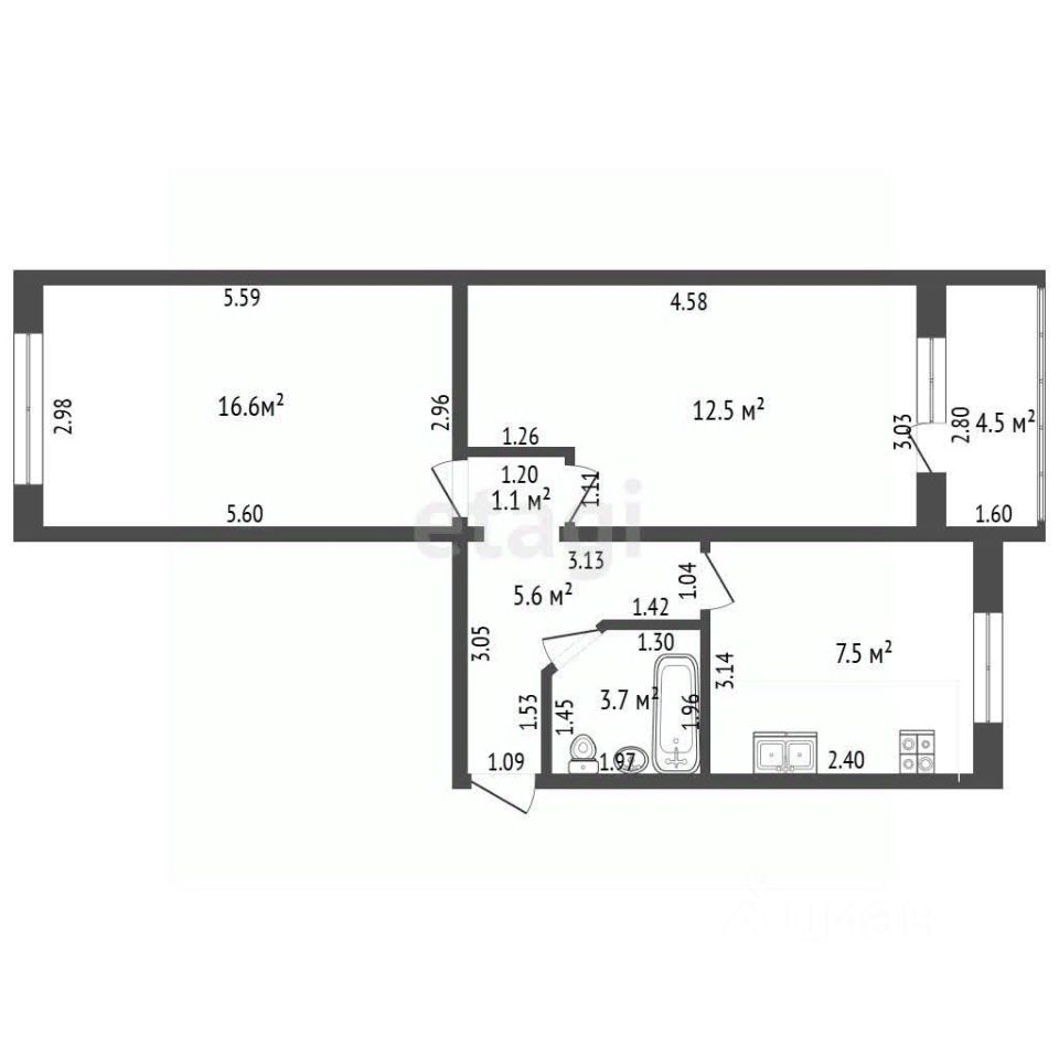 Квартира находится в состоянии с выполненным косметическим ремонтом, готова к заселению. Пространство функционально: светлая кухня оборудована необходимой бытовой техникой, включая холодильник, а совмещенный санузел оснащен современной сантехникой и стиральной машиной. Лоджия добавляет полезную площадь и может служить местом для отдыха с видом на тихий двор.