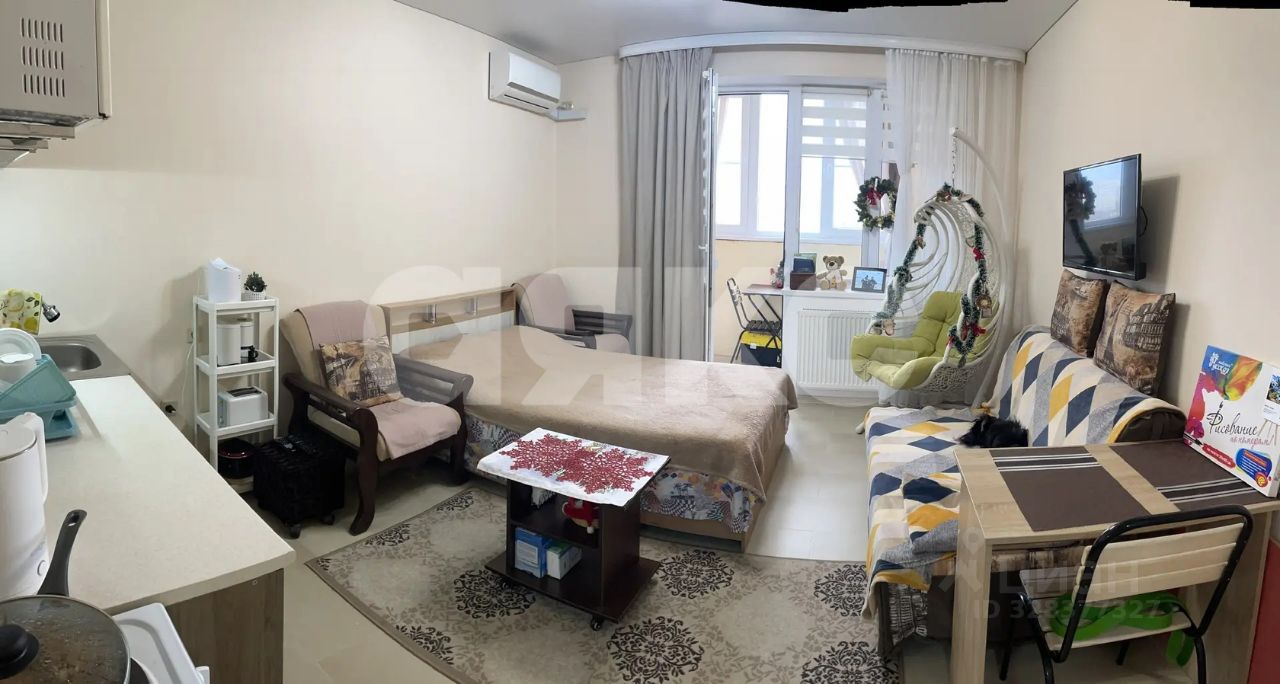 Квартира - студия общей площадью 28м2 , расположена в ЖК " Ромекс" на 8 этаже 18 этажного дома в одном из развитых районов города-курорта Анапа .