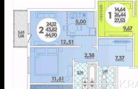 Квартира общей площадью 44.9 м2 + балкон на 14 этаже в новом жилом комплексе города Анапа.