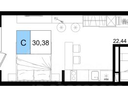 Студия 1: 30,38 м²