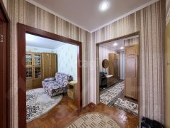Продается меблированная двухкомнатная квартира общей площадью 66,8 кв.м в мкр. 3А, которая находится на 7 этаже 9-этажного дома. Особенностью данной квартиры является ее удачная планировка "распашонка". Очень удобно, что из просторной гостиной (18 кв.м) есть выход на лоджию, переоборудованную в дополнительную комнату 6,5 кв. м. Гостиная с лоджией смотрят на запад, вторая жилая комната (13,4 кв.м) направлена окнами на восток. Вид из окон на зеленый тихий двор, он не упирается в соседние дома, т.к. они стоят на отдалении. Санузел раздельный. Есть второй балкон, где можно организовать кладовую и постирочную.