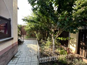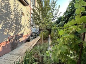 Ухоженная территория, плодовые деревья, кустарники, дорожки.