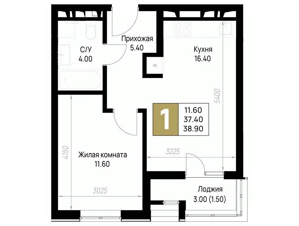 Общая площадь38,9 м²