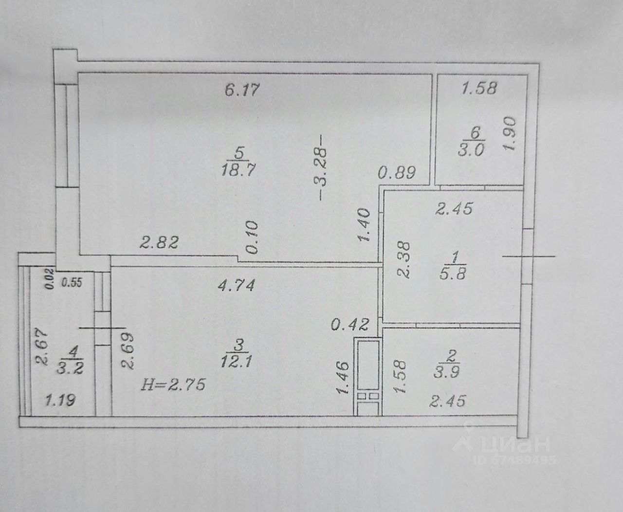 Общая площадь квартиры 46.7 кв.м