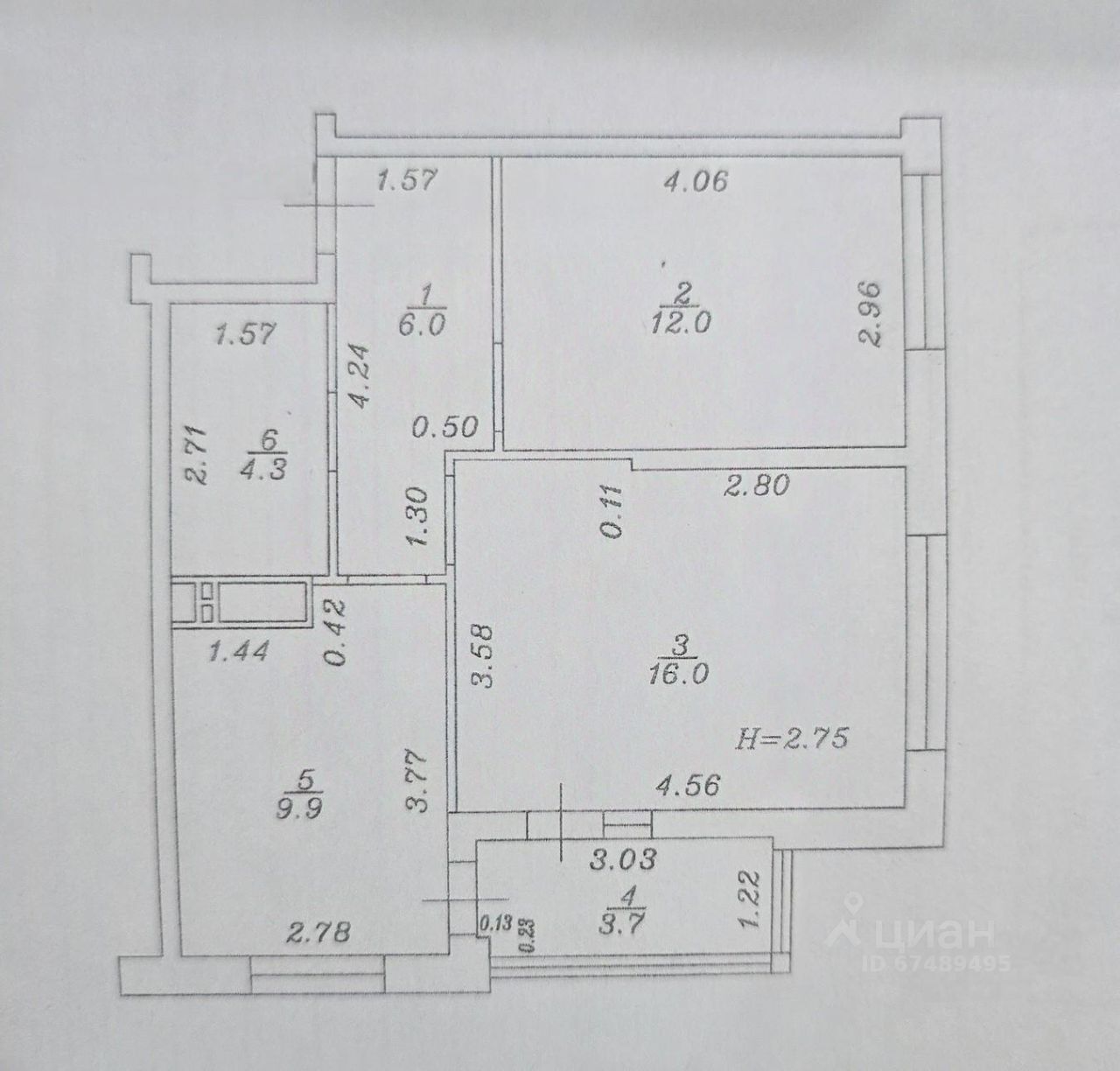 Общая площадь квартиры 51.9 кв.м