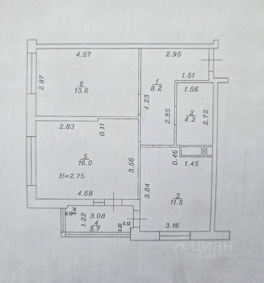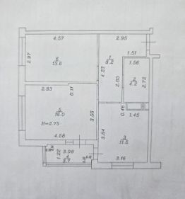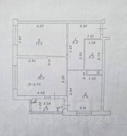 Общая площадь квартиры 57.3 кв.м