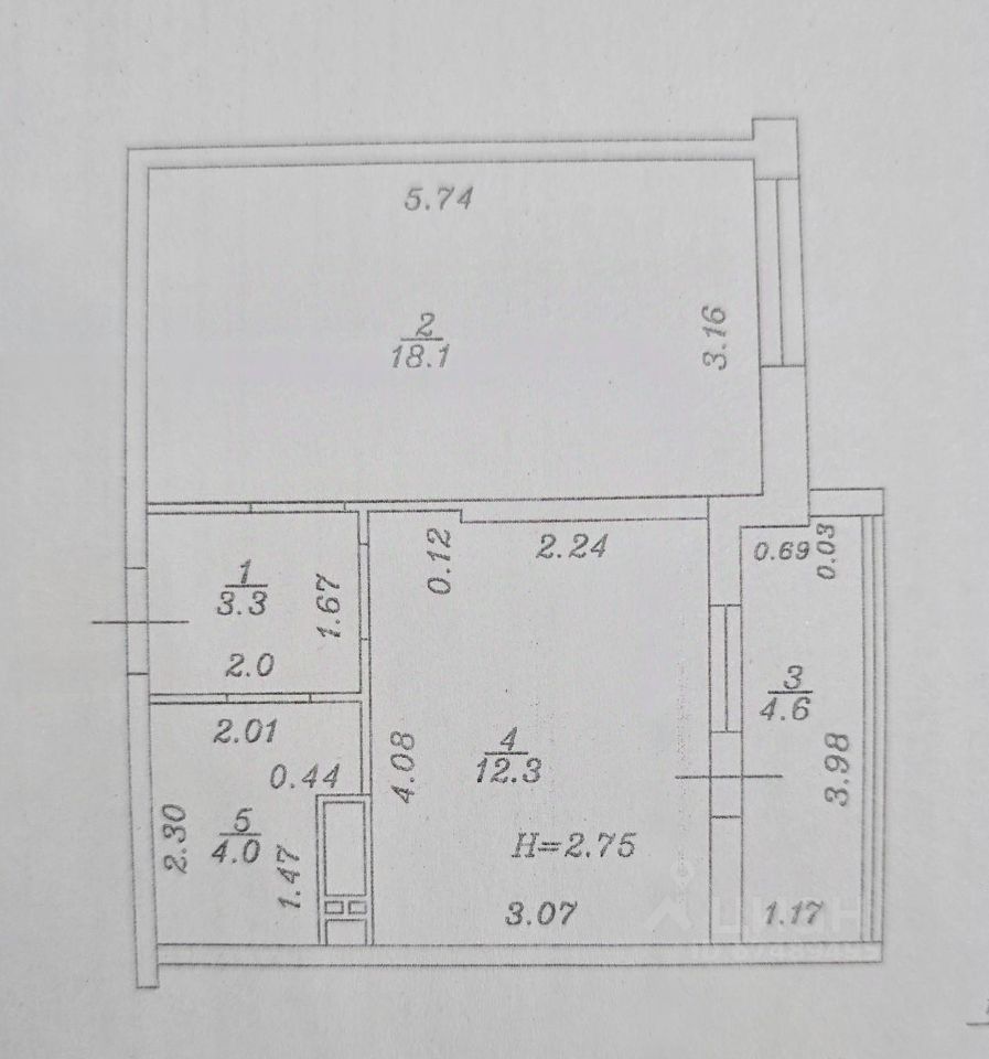Общая площадь квартиры 42.3 кв.м