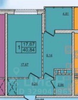 Объект 2147. 1 комн.кв. 40,5 кв.м. 3/16