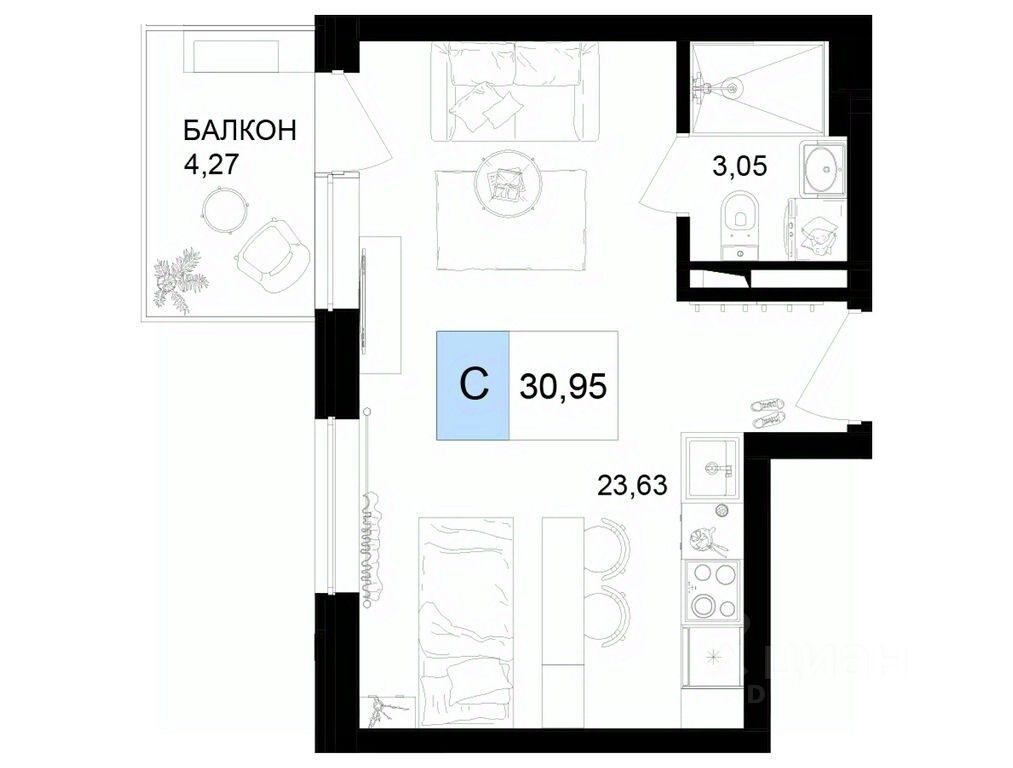 30,95 м²