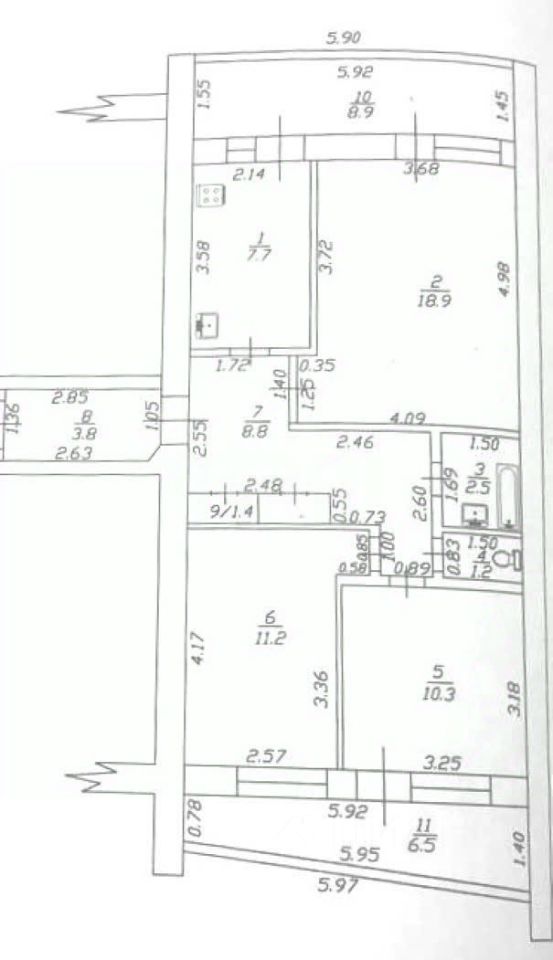 Планировка отличается рациональностью: все три комнаты изолированы, предусмотрена большая прихожая и два теплых застекленных лоджии с выходами из кухни и жилых помещений, что значительно расширяет полезное пространство. Санузел раздельный, коммуникации центральные, установлены счетчики учета газа, воды и электроэнергии. Состояние квартиры — жилое.
