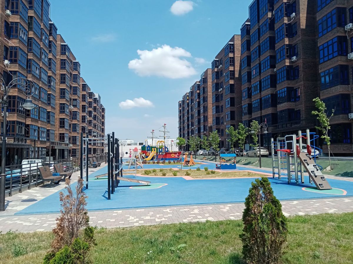 На территории детские и спортивные площадки, зоны отдыха и озеленение. В шаговой доступности находятся детские сады, школы, медицинские учреждения, продовольственные магазины, пляж и берег Черного моря.