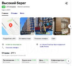 Высокий рейтинг на яндекс недвижимости.