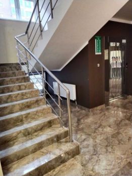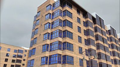 Дом облицован кирпичом, красивые тонированные панорамные окна, входная группа в подъезде выполнена из мраморной плитке.