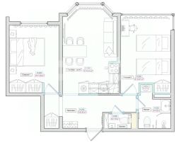 - Гостиная - кухня (вывод под кондиционер, выводы антенны и интернета для телевизора, закладные под шторы, фартук из керамогранита на кухне, выводы под плиту, духовку, вытяжку, посудомойку, холодильник, другие электроприборы)