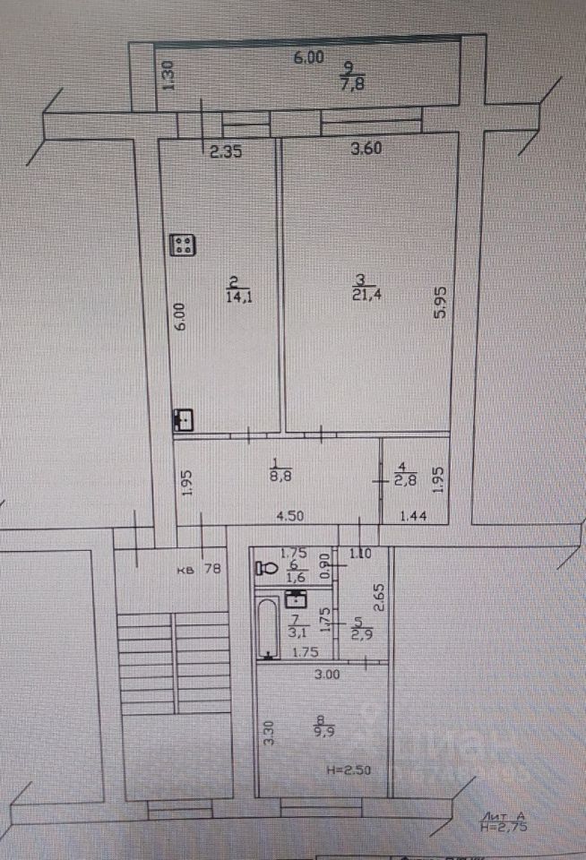 Санузел раздельный. Огромная лоджия - 8 м.кв.