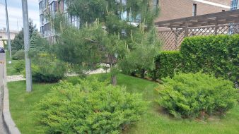 Ухоженный зеленый двор, розарий