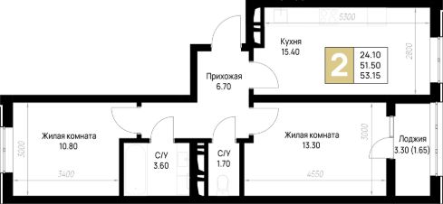 Общая площадь53,15 м²