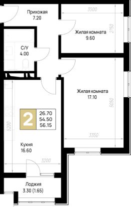 Общая площадь56,15 м²
