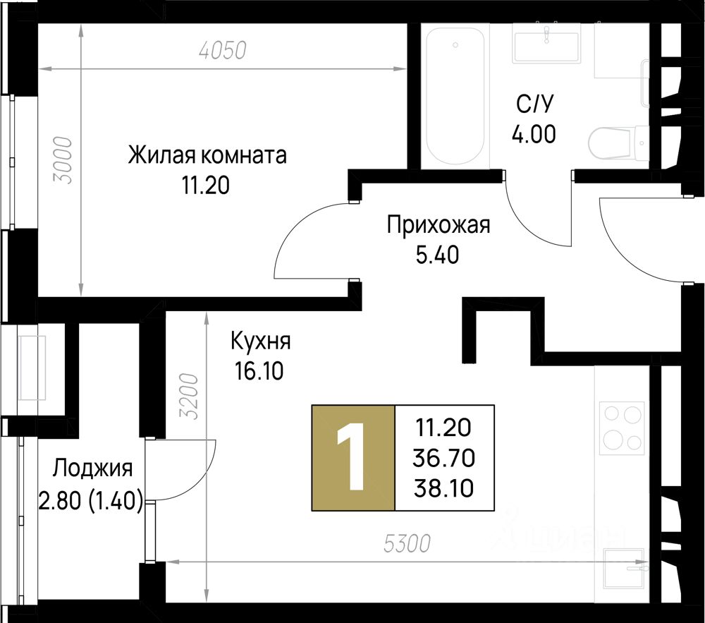 Общая площадь38,1 м²