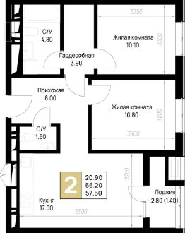 Общая площадь57,6 м²