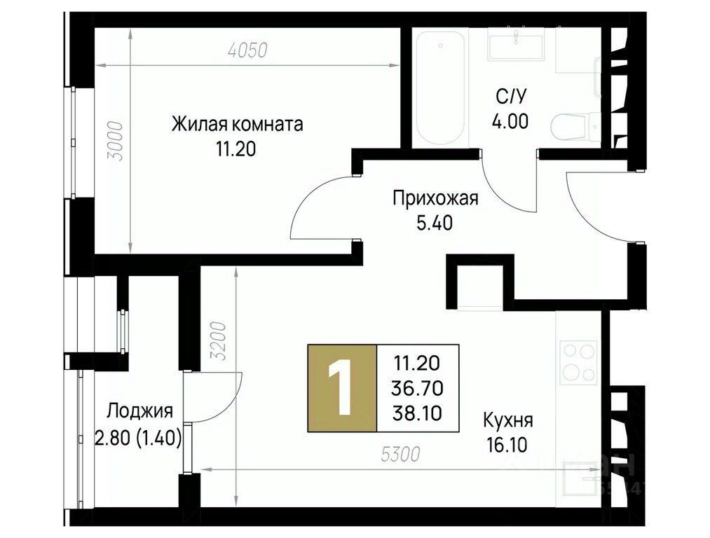 Общая площадь38,1 м²