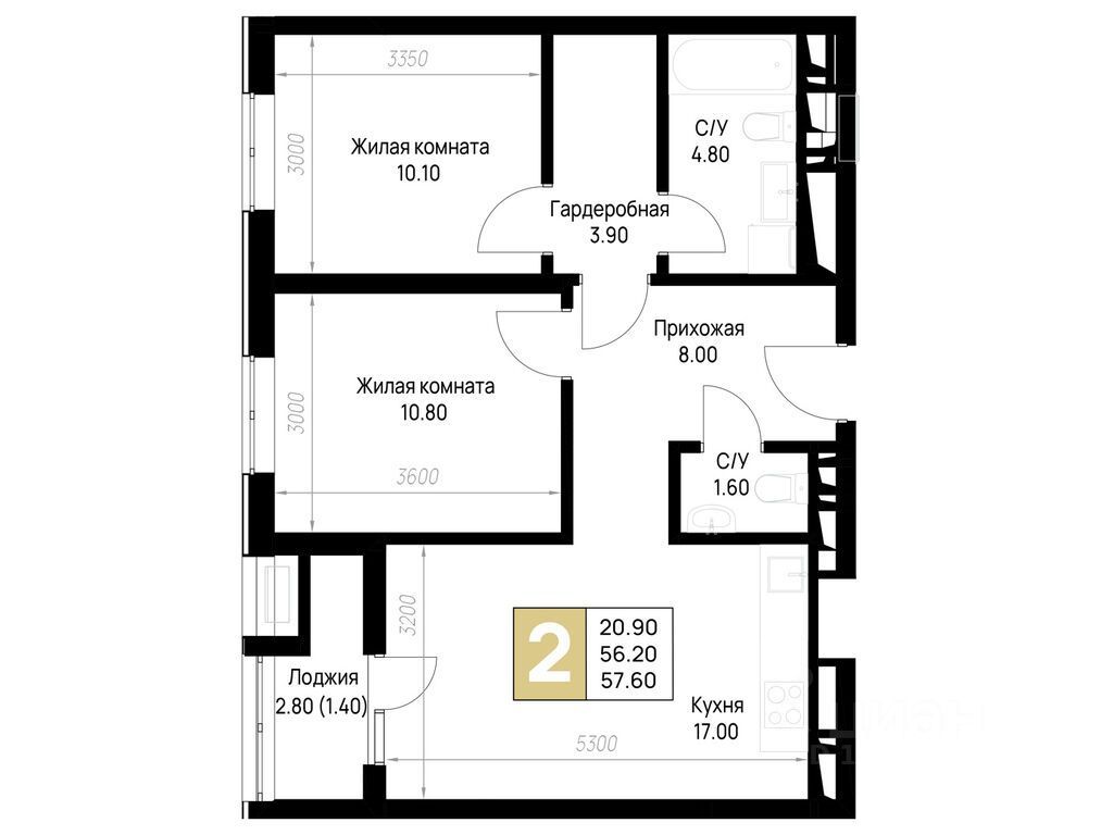 Общая площадь57,6 м²