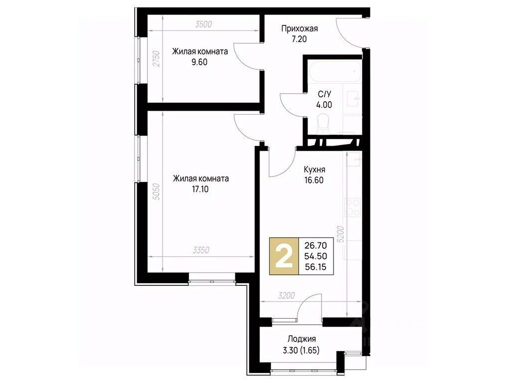 Общая площадь56,15 м²