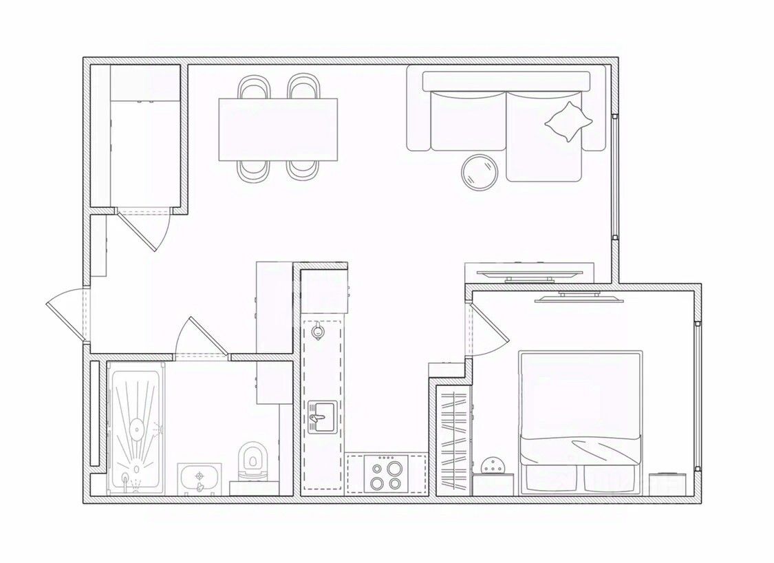 • Просторная кухня-гостиная площадью 25 м² и уютная спальня 10 м² создают идеальные условия для жизни.