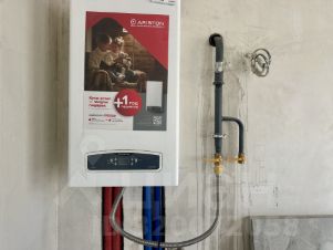 - в доме выполнена качественная предчистовая отделка, разведены электрические и сантехнические коммуникации, в общих зонах теплый водяной пол, в спальнях установлены радиаторы, в зоне кухни двухконтурный газовый котел Ariston, в санузле инсталляция Grohe,