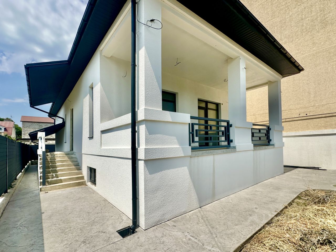 - дом построен в 2022 году, монолитный каркас, стены заполнены керамзитобетонными блоками, утеплены и отделаны фасадной штукатуркой,