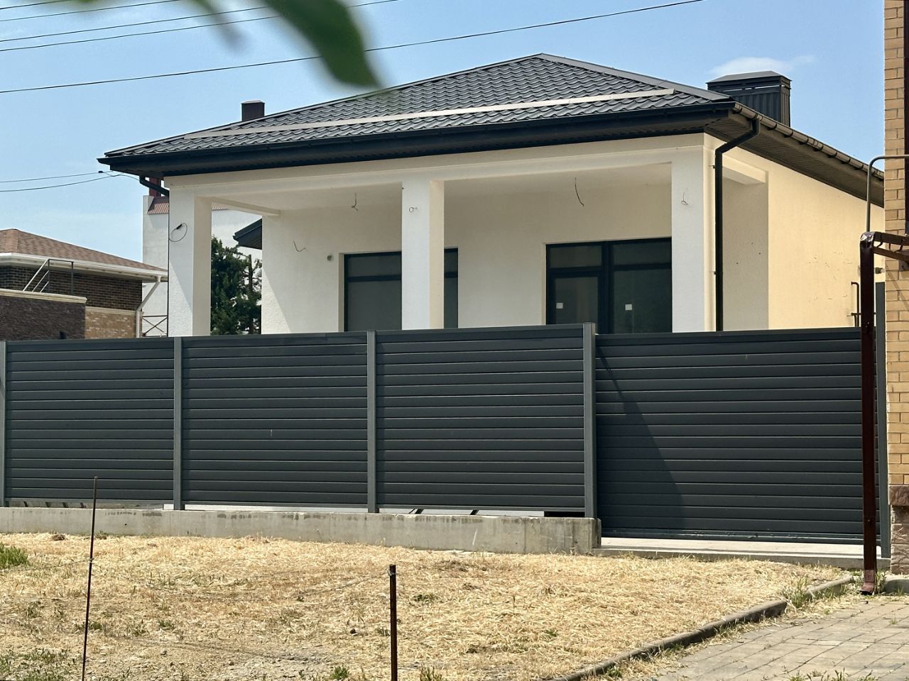 - хороший капитальный забор на фундаменте, калитка, откатные ворота, выведено электричество для установки системы дистанционного открывания,