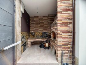 Летняя кухня с газовой плитой и удобным доступом к коммуникациям.