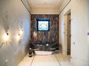 В ванной — мрамор Callacata Endless и лепнина.