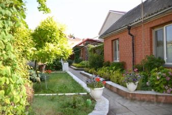 Во дворе: шикарная зона отдыха в тени деревьев и виноградной беседки, из кухни выход на террасу, беседка для отдыха, виноградник, сад и огород, гараж, котельная, 1 этажное строение для сдачи отдыхающим (как 2х комн.квартира) + летний гостевой 3х местный номер с с/у и кухней.