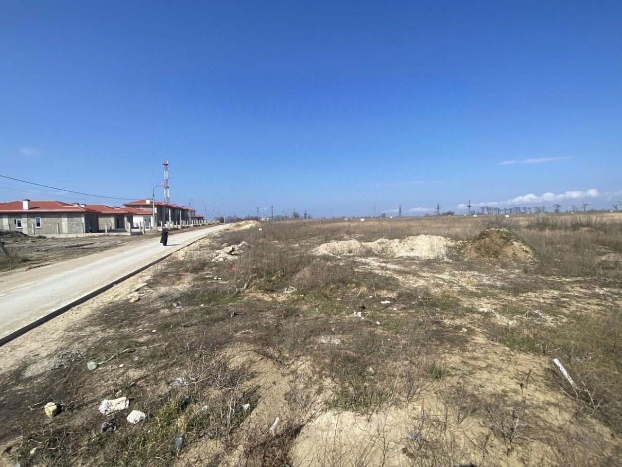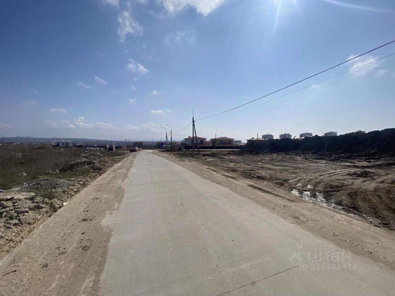 До участков ведет бетонная дорога, ландшафт чистый, ровный, без склонов.