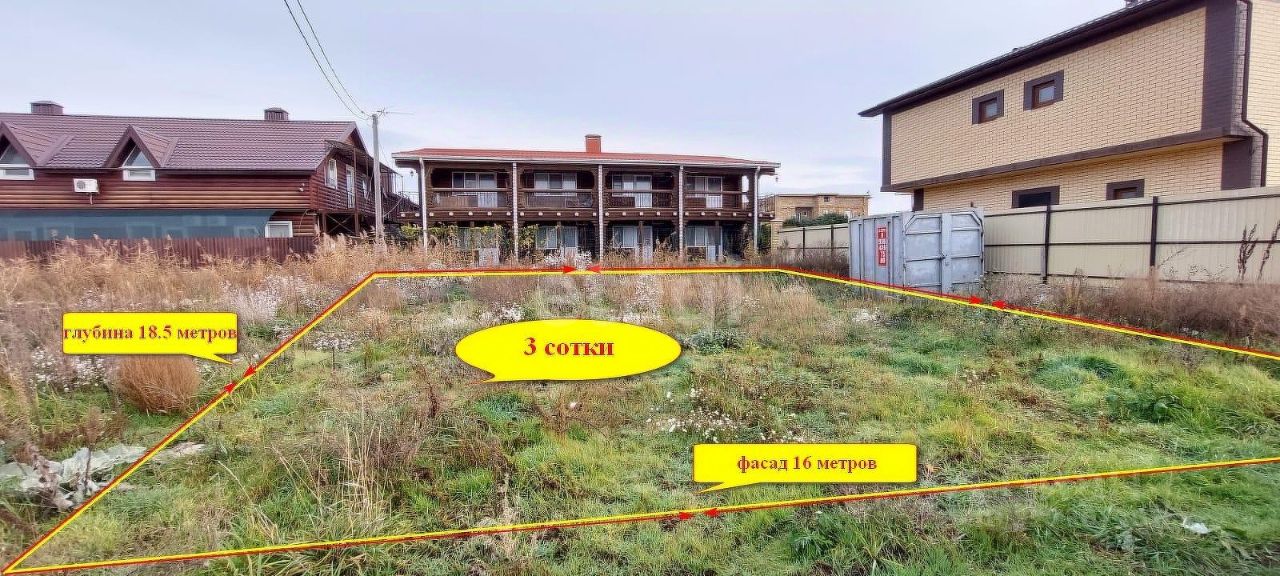 Фасад участка 16 метров, глубина 18,5 метров. Получено разрешение на строительство, сразу после покупки участка можно реализовывать Ваш проект!