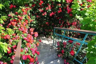 Особо стоит отметить благоустройство и озеленение участка. Круглогодичная зеленая ограда из плюща, розы, хвойные, фруктовые деревья, виноград и даже киви!.