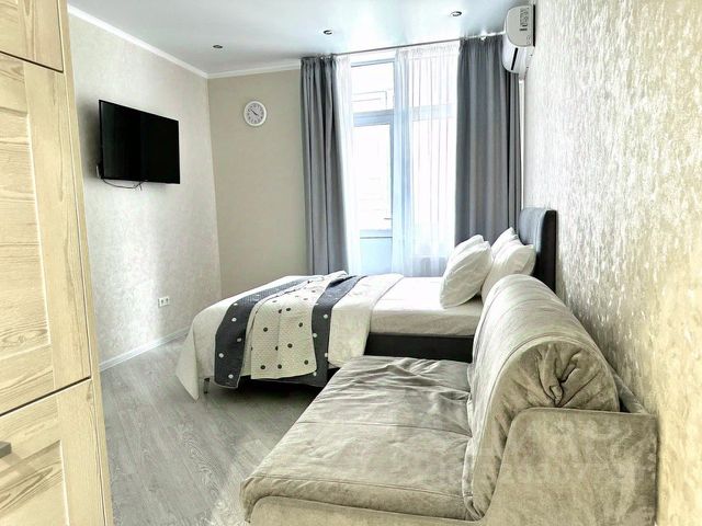 Новая студия с видом во двор с 8 этажа в Анапе. ЖК Привилегия — для тех, кто ценит комфорт и атмосферу дома, тихий район, когда все под рукой. Это пространство, где продумано всё до мелочей. Идеально подойдёт как для пары, так и для одного гостя, будь то отпуск, командировка или просто желание сменить обстановку. Прогулка до пляжей займет 20-25 минут пешком! Будьте нашими первыми гостями! Что вас ждёт: свежий ремонт и мебель. - Просторная двуспальная кровать — чтобы выспаться по-настоящему Небольшой диван-кровать - всегда можете разместится с детьми. Полноценная кухонная зона: готовьте любимые блюда, как дома Обеденный стол — для приятных завтраков и неспешных ужинов Светлая лоджия с креслом-кроватью — идеальное место для чтения, отдыха или дополнительного сна Чистый санузел с ванной — расслабиться после насыщенного дня Вся бытовая техника: от стиральной машины до микроволновки — ни о чём не придётся беспокоиться Комплекс с закрытым двором, с ухоженной территорией и приятной атмосферой. Вечнозеленые кустарники, лаванда, небольшая аллея с фонтаном. Современная детская, спортивная площадка. Это не просто квартира — это ваше комфортное пространство, в которое хочется вернуться.... УСЛОВИЯ ЗАСЕЛЕНИЯ: Расчетное время: заезд после 15.00 часов, выезд до 12.00 (можем оговорить удобное для вас время заезда, выезда индивидуально.) Дистанционное подписание договора Мы дорожим качеством своих апартаментов, поэтому обеспечительный платеж 3000 руб - неотъемлемая часть бронирования. Полностью возвращается на карту в течение суток после выезда, при соблюдении правил дома и сохранности имущества. Отчетные документы для юрлиц и командированных сотрудников предоставляются по запросу. Возраст гостей до 20 лет с родителями! У нас динамическое ценообразование, стоимость проживания меняется в зависимости от выбранных дат. Что не приемлемо наших в апартаментах? 1) Курение ЛЮБЫХ форм курительных средств, жидкостей и пр. 2)Шумные вечеринки 3)Нельзя с животными Мы не просто соблюдаем законы, но и бережно относимся к другим гостям,и соседям! ПОЧЕМУ ВЫБИРАЮТ НАС? 1) Комфорт на уровне отеля — свежий ремонт, новая мебель, техника и все для жизни 2) Гибкие условия — бронирование онлайн 3) Прозрачные цены, помощь 24/7 4) Для любых гостей — у нас есть варианты для пар, семей и компаний друзей Анапа ждет Вас!