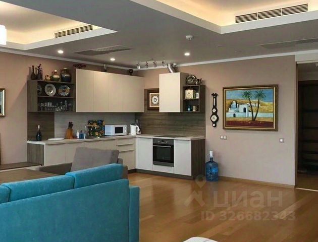 Просторная кухонная зона с барной стойкой у окна оборудована всем необходимым для приготовления пищи, посудой и качественной современной техникой: варочная панель, большая посудомойка, холодильник, СВЧ, духовой шкаф, чайник, кофеварка, мультиварка, погружной блендер (миксер), тостер.