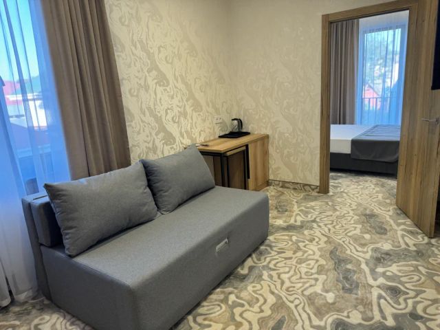 Отель "Прибой" в самом центре прекрасной и живописной Анапы это поистине замечательный и гостеприимный отель, где каждый гость, будь то маленький ребенок или взрослый, неизменно найдет все необходимые условия и комфорт для незабываемого отдыха и расслабляющего времяпрепровождения. Наш отель с радостью и большим удовольствием предлагает вам идеальное место для тех, кто ищет максимальное удобство в перемещении и близость к самым интересным развлечениям и разнообразным достопримечательностям, которые делают этот замечательный город поистине уникальным и притягательным. Вас ждут уютные и светлые номера, каждый из которых оснащен всем необходимым для комфортного и приятного проживания: современным кондиционером, бесплатным и высокоскоростным Wi-Fi, телевизором с множеством каналов, мини-холодильником для ваших удобств, шкафом для хранения личных вещей и собственной ванной комнатой, где вы сможете расслабиться после интересного дня. Также каждый номер при этом с выходом на балкон, где вы сможете наслаждаться свежим воздухом и прекрасными видами. Наша главная цель сделать ваш отдых в "Прибое" поистине незабываемым и по-настоящему ярким! Мы стремимся окружить вас заботой и вниманием, чтобы каждая минута, проведенная в нашем уютном отеле, оставила самые теплые и светлые воспоминания, которые будут согревать ваше сердце и приносить радость. Приглашаем вас в наш отель, где удобное расположение, комфортные номера и теплый, радушный прием сделают ваш отдых по-настоящему незабываемым и приятным. Мы уверены, что у нас вы получите только положительные эмоции и незабываемые впечатления, которые останутся с вами на долгое время! Номер оборудован: двуспальная кровать, диван-кровать, кресло-кровать, прикроватные тумбочки, журнальный столик зеркало, шкаф, комод, стул, обеденный стол, вешалка для одежды, телевизор, кондиционер, мини-холодильник электрочайник. Ванная комната: ванна, раковина, туалет, зеркало, полотенцесушитель. Номер с балконом.